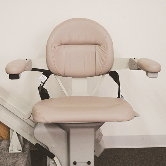 Highlights ✦Elite Straight stairlift capacity: 400 lbs (181 kg) ✦Plush, generous-size curve with multiple height adjustments ✦Offset swivel curve makes getting on/off safe and easy ✦Adjustable footrest height for maximum comfort