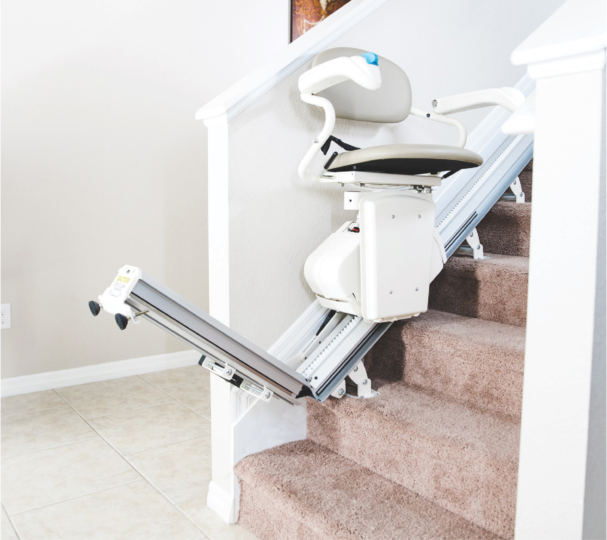 4000 Curved StairliftTwin-Rail Stairlift for Curved Staircases This couble-rail curved stairlift can handle tight turns, spirals and stairs with intermittent landings with ease while you ride in safety and comfort. If space at the bottom of the staircase is a concern, the seat can be parked upstairs by adding a Powered HInge Rail that lifts and folds the track away shen not in use. stry leader Savaria. |